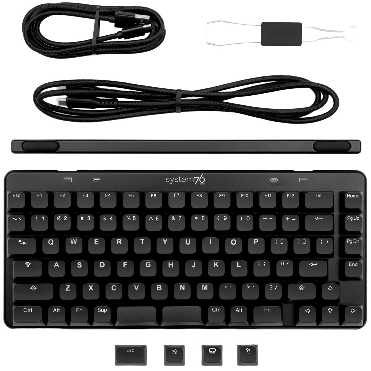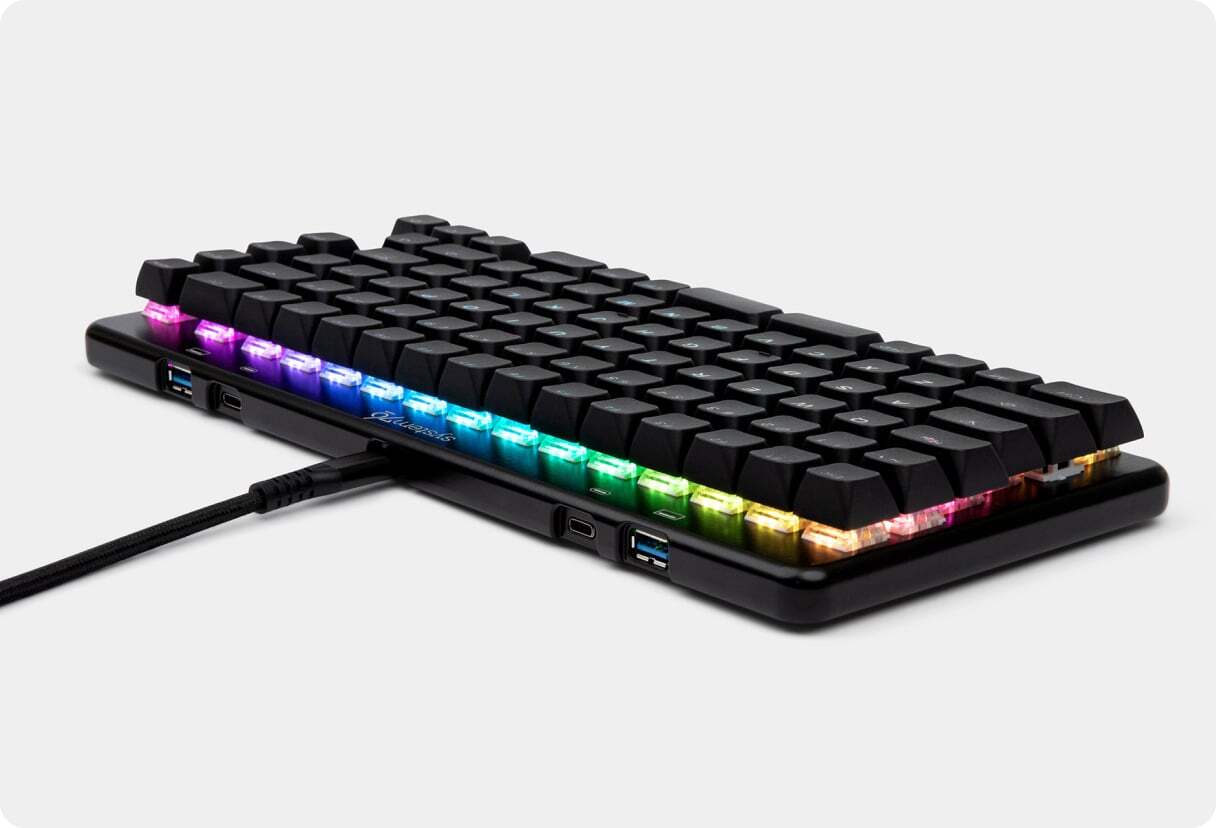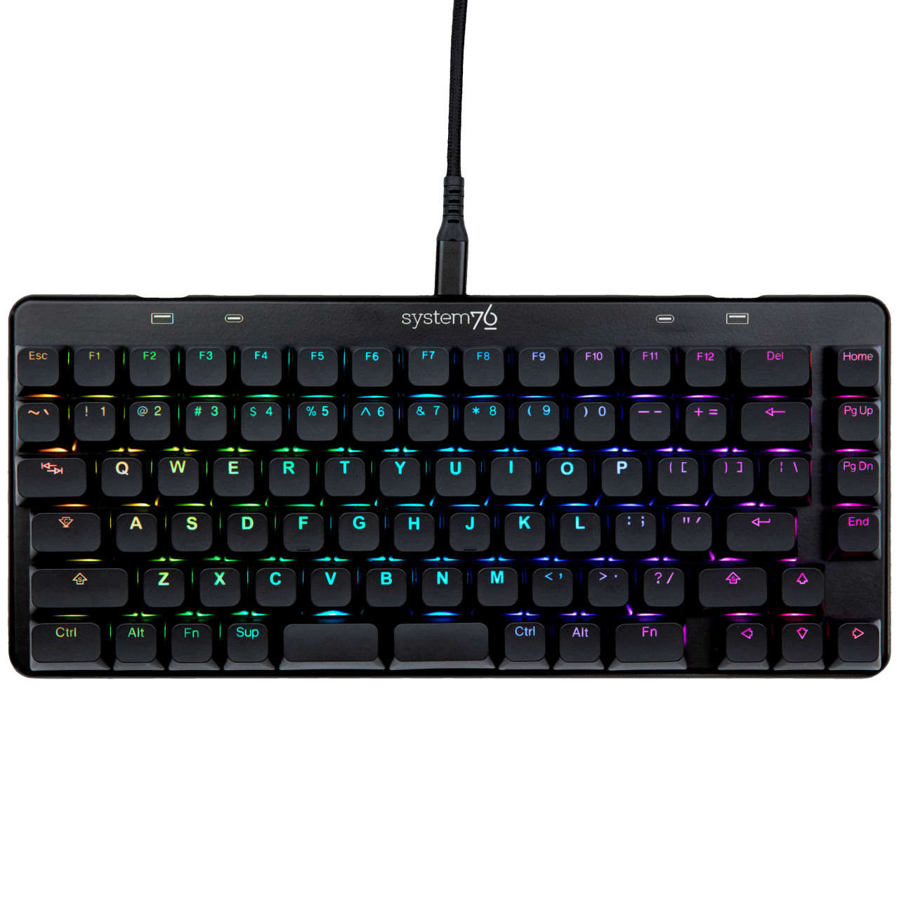Compact 76% keyboard with high USB-C and USB-A transfer speeds. System76's customizable Launch mechanical keyboards are designed by keyboard lovers, for keyboard lovers. Features a split space bar for mapping essential keys to a more convenient spot. Configurable via the System76 Keyboard Configurator app and compatible with Linux, MacOS, and Windows.