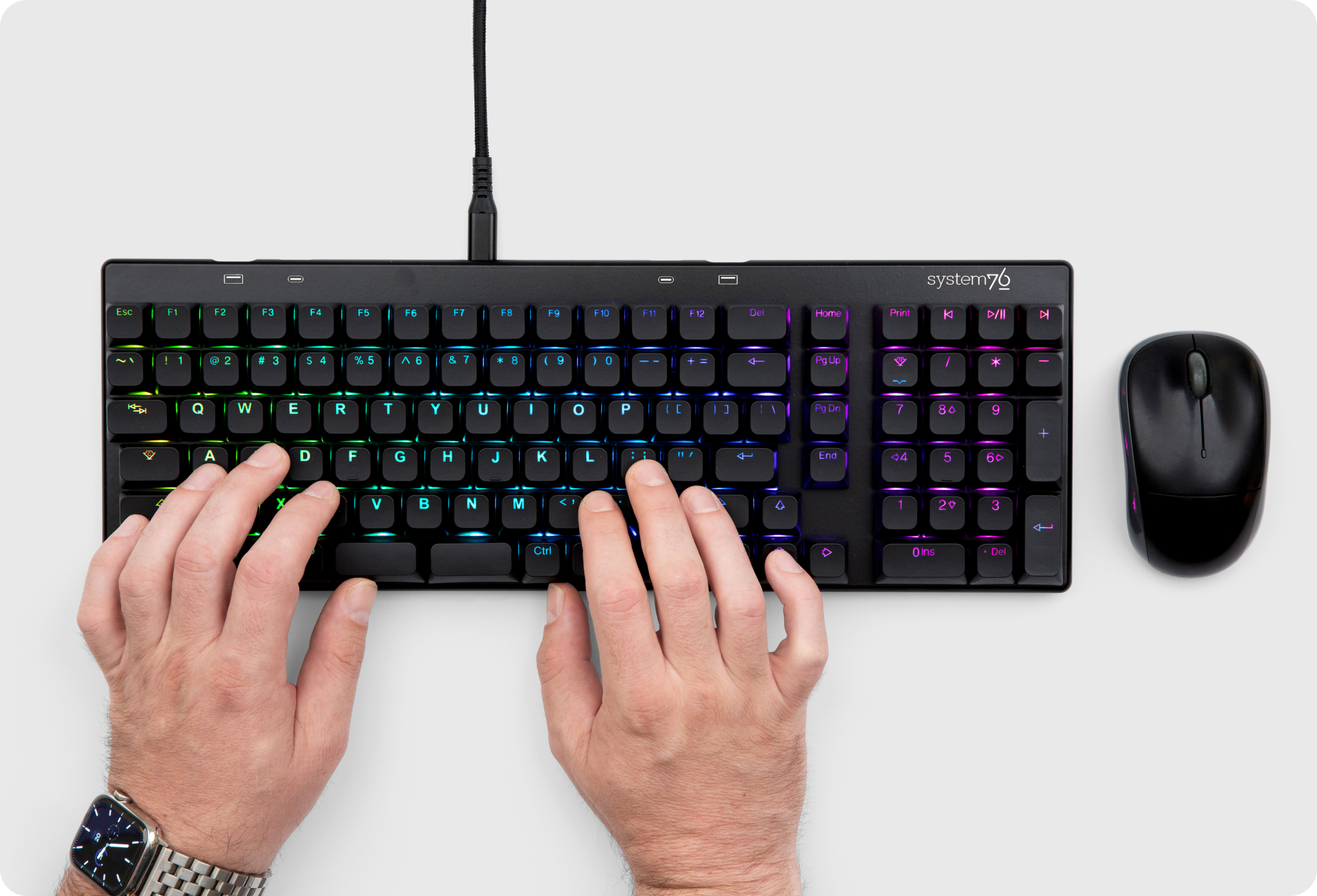 Full-size 105-key keyboard with numpad and high USB-C, USB-A transfer speeds. System76's customizable Launch Heavy mechanical keyboards are designed by keyboard lovers, for keyboard lovers. Features a split space bar for mapping essential keys to a more convenient spot. Configurable via the System76 Keyboard Configurator app and compatible with Linux, MacOS, and Windows.