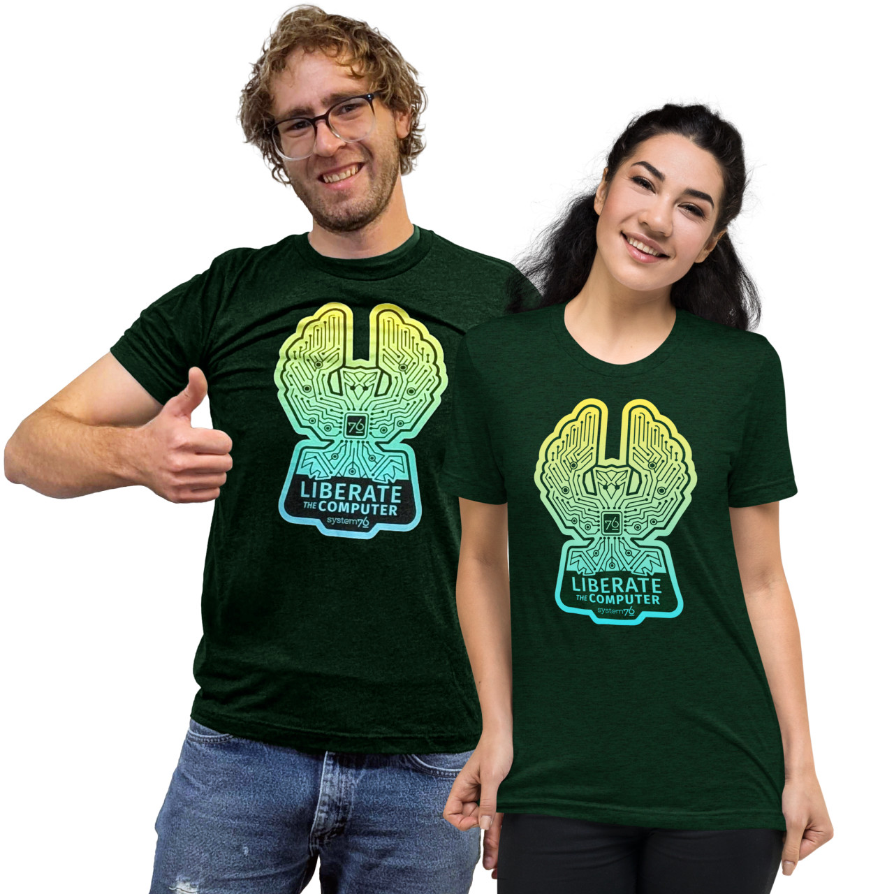 System76 T-shirts are made to order to reduce waste and increase happiness.